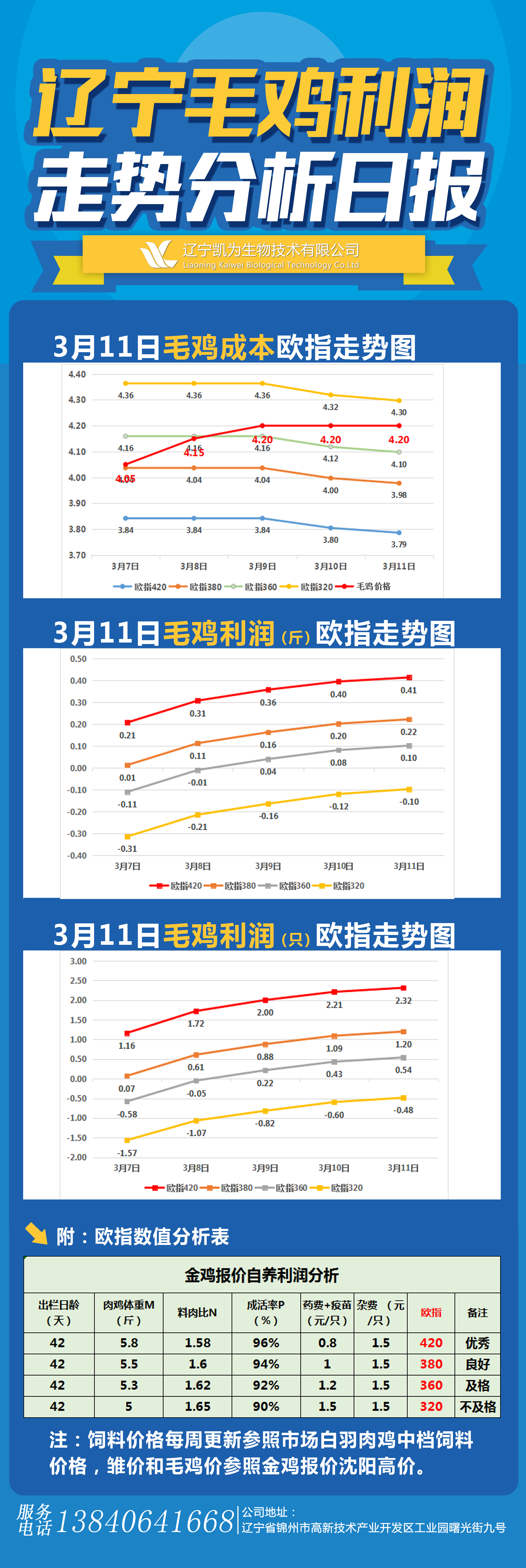 3月11日遼寧地區(qū)毛雞利潤走勢分析圖