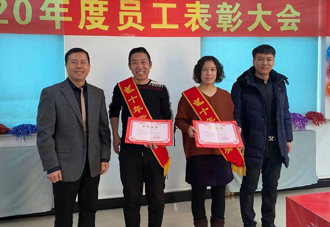 閆希東、薛曉娟獲得2020年度十年貢獻(xiàn)獎(jiǎng),十年的堅(jiān)守不渝,十年的默默耕作,他們把最美好的青春韶華賦予了我們?yōu)橹餐瑠^斗的事業(yè),十年如一日他們時(shí)刻心系企業(yè)的憂患,與企業(yè)同風(fēng)雨共命運(yùn),正是因?yàn)樗麄兊母冻鰟P為的今天才如此絢麗。公司總經(jīng)理王鐵良與銷(xiāo)售部經(jīng)理趙福寬為獲獎(jiǎng)?wù)哳C發(fā)榮譽(yù)證書(shū)。
