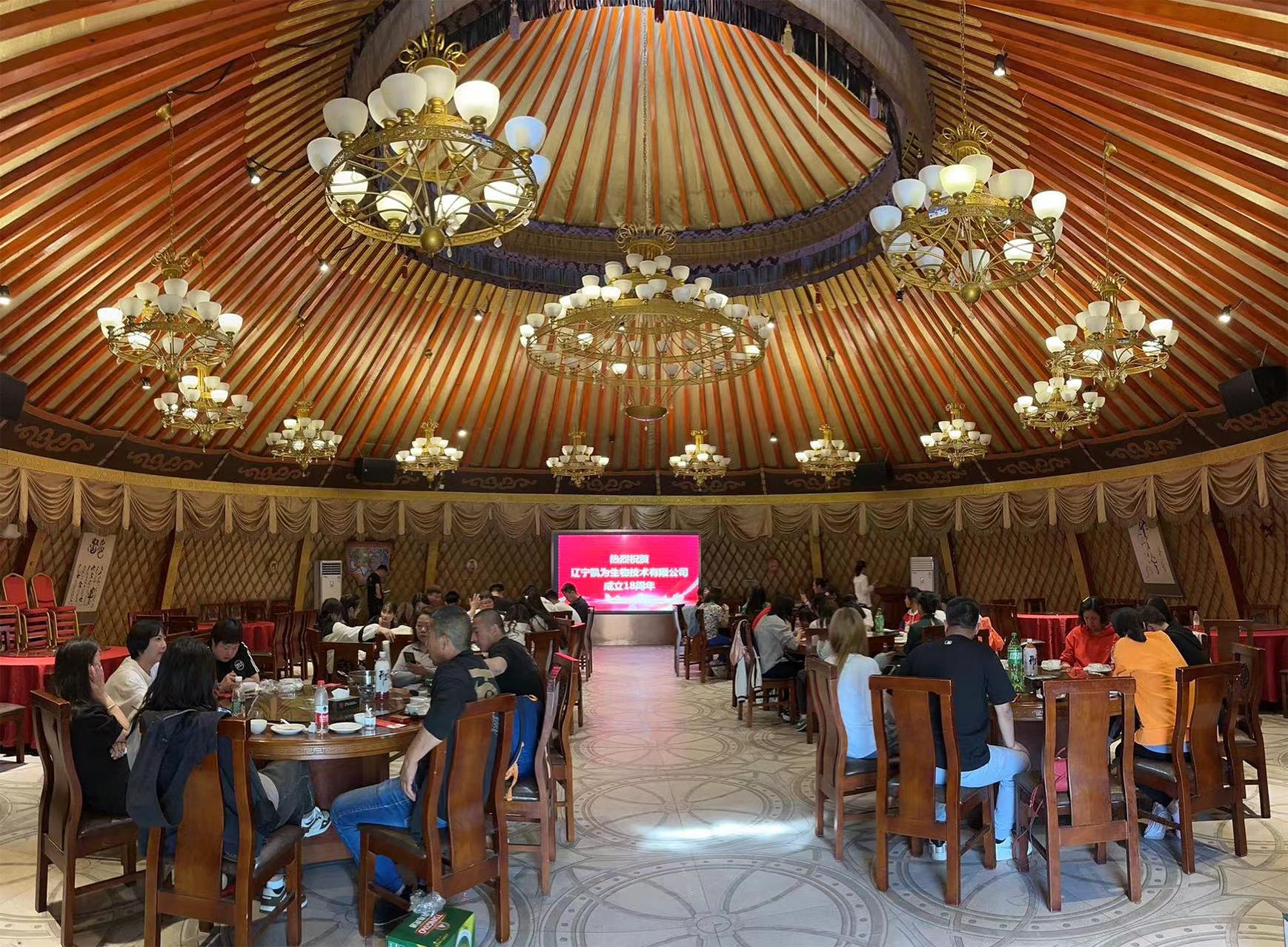 眾人聚,歡樂起。下午13:00,公司又組織員工在蒙古風情園舉行集體聚餐活動。就餐開始,大家輪番敬酒。杯酒之情,一切盡在不言中。這里有最親切的領導,最可愛的同事,最可口的佳肴,最溫暖的凱為大家庭。聚餐期間,大家邊吃烤全羊,邊互相談天說地,吐露心聲。大家都放下了日常工作的嚴肅,就平日工作中遇到的趣事、煩惱相互交流,有說有笑,餐桌上充滿了歡聲笑語。餐后,進行自由活動,有的玩起了撲克;有的唱起了歌,歌聲嘹亮,在空中回蕩。